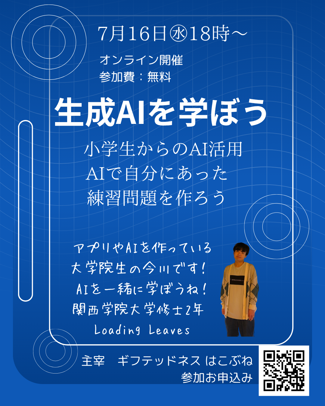 生成AIを学ぼう! 開催してくださった こうすけさんが 神戸AIサマーカーニバルに出展されます。