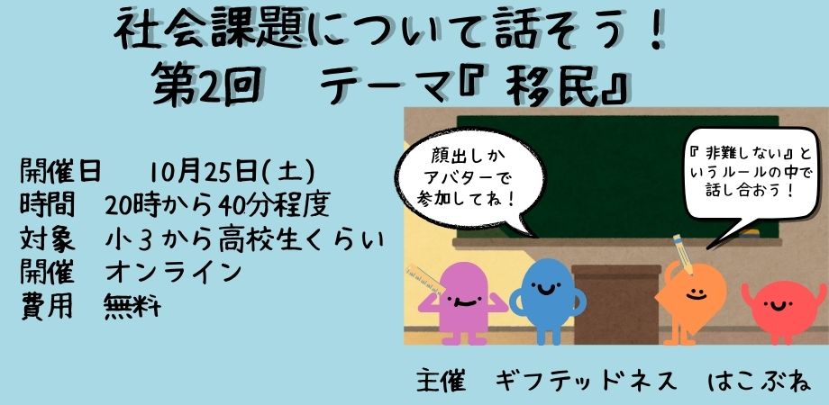 前回、盛り上がった『社会議題を話してみよう』を今回は『移民』にテーマを絞って開催します。